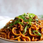 Easy Mongolian Ground Beef Noodles is a quick and delicious meal that brings bold flavors to your dinner table. This recipe is simple enough for busy weeknights, yet tasty enough to impress your family or guests. The combination of savory ground beef, aromatic garlic and ginger, and a sweet and tangy sauce makes this dish enjoyable for everyone.