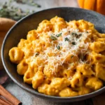 A cozy and comforting dish that combines creamy mac and cheese with the warm flavor of pumpkin, perfect for fall or any time of year.